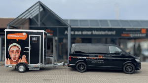 Während Ihr Badezimmer wieder auf Hochglanz gebracht wird, müssen Sie auf nichts mehr verzichten. Damit die Renovierungszeit für Sie so angenehm wie möglich bleibt, stellen wir Ihnen auf Wunsch unseren mobilen Duschanhänger als vollwertiges Ersatz- Badezimmer zur Verfügung – direkt vor Ihrer Haustür.